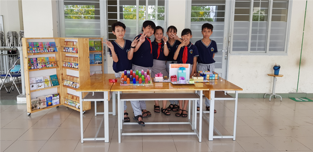 Tiếp theo là sản phẩm thật đáng yêu "Quả bóng vui học" của các em đến từ lớp 6A, với mô hình "Quả bóng vui học" cùng với việc tìm hiểu quyển "Bách khoa tri thức cho trẻ em" các em đã tạo nên trò chơi thật thú vị.